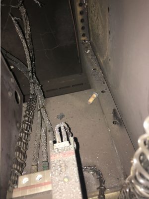 故障情況:箱式變電站低壓側(cè)電流互感器故障引發(fā)低壓側(cè)短路,導致變壓器AC相短路,現(xiàn)場一臺1000kva變壓器直接損壞,軸頭線圈直接熔斷。