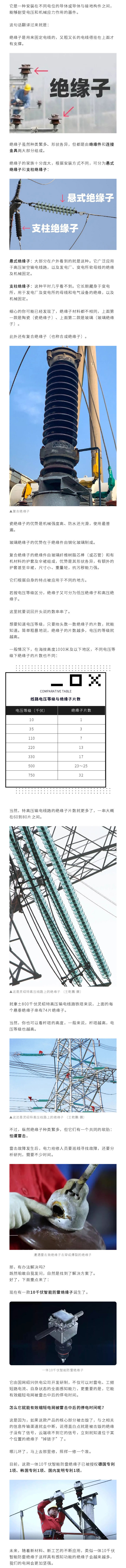 【get這個知識,你就是別人眼里的“專家”】前幾天,和小伙伴開車經(jīng)過一條田邊小路,看到路邊聳立著一座座鐵塔,很嘚瑟地問同行的小胖:“看見那些電線了么?你知道怎么分辨他們的電壓等級么?”看到小胖呆萌的小眼睛閃爍出對知識的渴望,我決定滿足他:想知道電壓等級,很簡單,數(shù)串串就行了。那個串串,就是上面的絕緣子。話說到這里,就先簡單介紹下絕緣子。這東西,即便是在電力系統(tǒng)工作的人都不一定能認(rèn)全。它是一種安裝在不同電位的導(dǎo)體或?qū)w與接地構(gòu)件之間,能夠耐受電壓和機(jī)械應(yīng)力作用的器件。