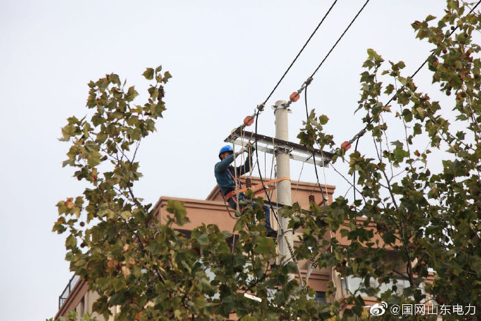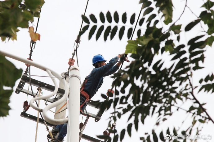 招遠(yuǎn)市供電公司在10千伏市區(qū)線進(jìn)行裝件打拉線作業(yè)