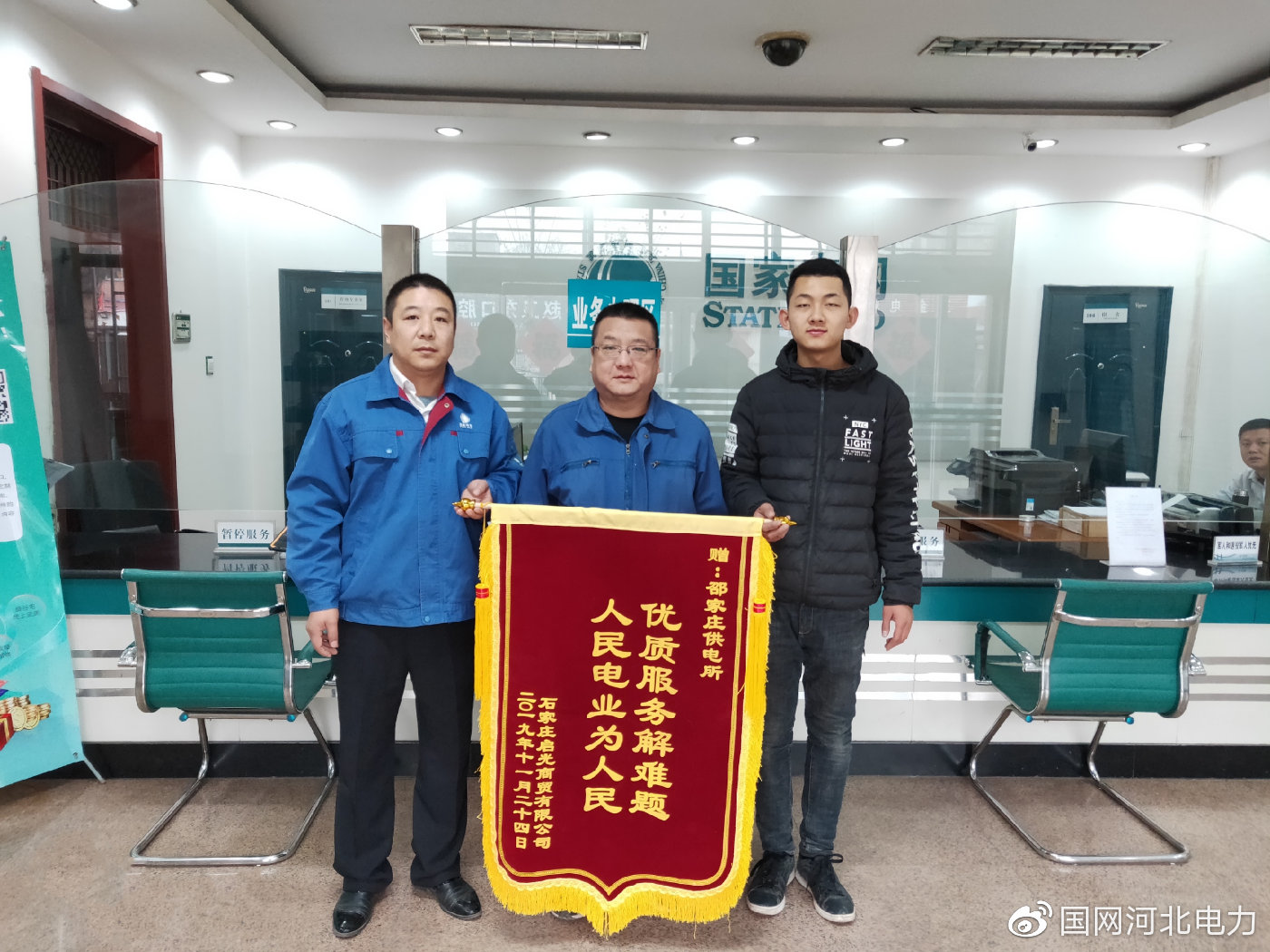 12月2日一大早,欒城區(qū)啟光商貿(mào)有限公司的工作人員手拿一面寫著“優(yōu)質(zhì)服務解難題,人民電業(yè)為人民”的錦旗送到了國網(wǎng)石家莊市欒城區(qū)供電公司邵家莊供電所所長田海賓的手中,感謝該公司員工認真負責,盡心盡力為用戶服務的工作人員。