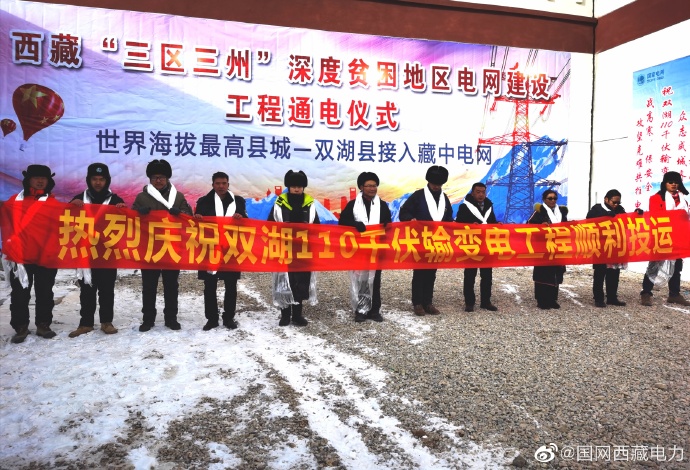 2月24日10時20分,海拔5000米的雙湖縣110千伏輸變電工程投運現(xiàn)場一片歡歌笑語,隨著電力員工合上最后一個開關(guān),標(biāo)志著世界海拔最高的縣納入了國家電網(wǎng)主網(wǎng)覆蓋范圍,有力解決了該縣7300余名高海拔地區(qū)農(nóng)牧民群眾用電難的問題。長期以來,雙湖縣一直處于電力孤網(wǎng)運行,僅依靠光伏供電,供電可靠性差,電能質(zhì)量不高,為了讓更多的農(nóng)牧民群眾用上大電網(wǎng)的電,提高當(dāng)?shù)剞r(nóng)牧民群眾的生產(chǎn)生活用電水平,國網(wǎng)西藏電力實施雙湖縣“三區(qū)三州”深度貧困地區(qū)電網(wǎng)建設(shè)工程,總投資約6億元,新建110千伏輸變電工程2項,線路長度270公里,主變?nèi)萘?萬千伏安;35千伏輸變電工程2項,線路長度123公里,主變?nèi)萘?000千伏安;10千伏中低壓工程涉及到4個鄉(xiāng)鎮(zhèn),新建10千伏及以下線路236公里,新增臺變21臺,新增配變?nèi)萘?000千伏安,新建戶表1896戶。