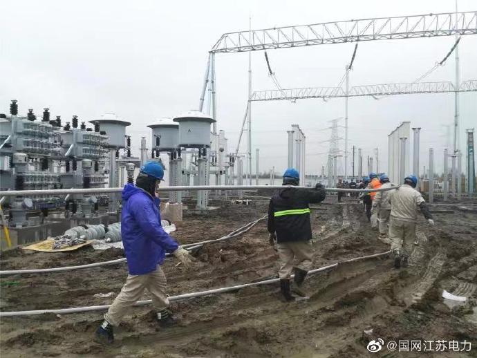 1月10日,常州地區(qū)依舊陰雨連綿,江蘇省送變電有限公司的施工人員依舊在500千伏中吳變的施工現(xiàn)場(chǎng)冒雨戰(zhàn)斗。中吳變的主變構(gòu)架至220千伏構(gòu)架的高跨線有70余米,為將6根高跨線從壓接區(qū)搬運(yùn)至安裝位置大家齊心協(xié)力、步調(diào)一致共同完成這項(xiàng)工作,為下一步軟母線安裝做好準(zhǔn)備。雖然寒風(fēng)夾雜著雨水,顯得更加寒冷,大家的熱情卻絲毫不減,用實(shí)際行動(dòng)保證工程的按期投運(yùn)。