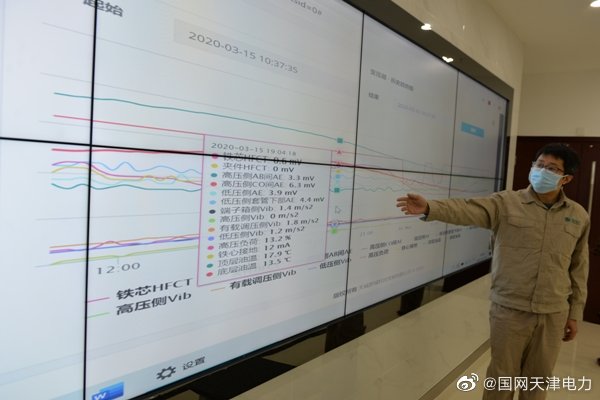 3月16日,天津電科院員工在電網(wǎng)設備診斷監(jiān)測平臺大屏幕前,對天津地區(qū)部分重點變壓器運行狀態(tài)變化數(shù)據(jù)進行遠程狀態(tài)監(jiān)測,保障疫情防控和復工復產(chǎn)關鍵時期電網(wǎng)設備穩(wěn)定運行。 ????