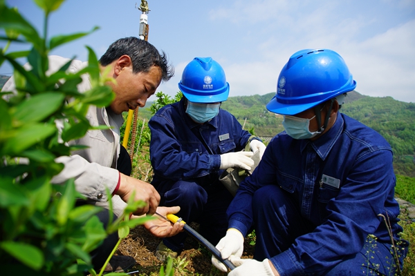 3月25日,正值春耕春灌的關(guān)鍵時(shí)期,國(guó)網(wǎng)旬陽縣供電公司蜀河供電所的員工來到蜀河鎮(zhèn)郅家灣村,為貧困戶鄧治琪承包的金銀花基地檢查灌溉用電線路,并幫助他安裝調(diào)試灌溉系統(tǒng)。