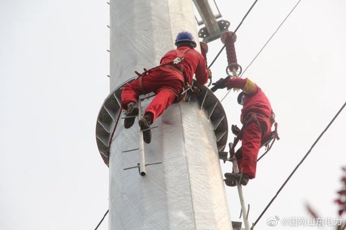 【城區(qū)配置雙電源 供電加上“雙保險”】4月8日,壽光市洛城街道110千伏平洛Ⅰ線、Ⅱ線施工現(xiàn)場塔吊林立,國網(wǎng)壽光市供電公司50余名工作人員進行拆除導地線、線路開斷、T接建新110千伏建橋至洛城線路以及將66號塔更換為雙回雙T塔等工作,改造完畢后,將大大提升主城區(qū)供電的穩(wěn)定性與可靠性。