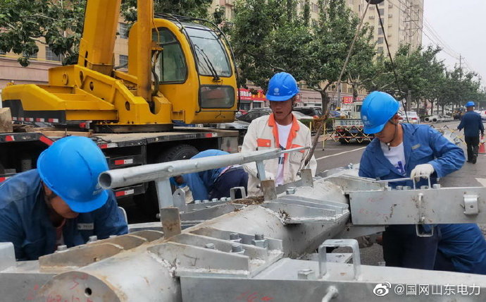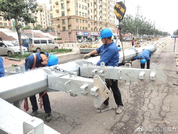 6月16日,國網夏津縣供電公司30余名職工冒高溫組立10千伏一中線鐵塔,汗流浹背的他們擰緊桿塔螺栓,在吊車的幫助下立起一基基鐵塔,攻堅一中、國稅等4條老舊線路改造進度,力爭月底竣工投運,以可靠電力供應確??蛻粝募居秒?。