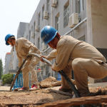 6月25日,中國(guó)農(nóng)歷傳統(tǒng)端午節(jié),在安徽省渦陽(yáng)縣第二中學(xué)高考考點(diǎn),電力施工人員冒著高溫,加班加點(diǎn),為考場(chǎng)空調(diào)用電敷設(shè)專用電力線路。