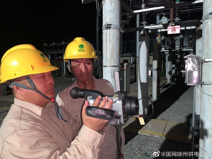近日,接連幾天氣溫高達(dá)36攝氏度,用電負(fù)荷也隨之不斷攀升,國(guó)網(wǎng)銅山區(qū)供電公司35干伏棠張變電站1號(hào)主變一度出現(xiàn)過負(fù)荷,為確保電網(wǎng)在夏季用電高峰期間的安全運(yùn)行,該公司運(yùn)維人員每天兩次對(duì)該站設(shè)備進(jìn)行特巡。8月16日晚23點(diǎn)運(yùn)維人員冒著高溫使用紅外測(cè)溫儀在對(duì)設(shè)備進(jìn)行巡視測(cè)溫。