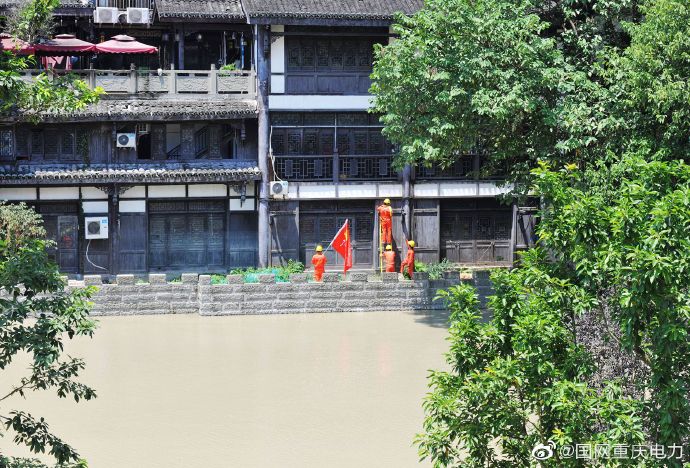 8月14日,重慶嘉陵江2020年第1號洪水過境重慶磁器口,當(dāng)天12點(diǎn)30分,洪峰水位達(dá)186.54米,超警戒水位3.9米,比7月26日洪峰水位足足高出了近4米。國家電網(wǎng)紅巖(市區(qū)沙坪壩)共產(chǎn)黨員服務(wù)隊(duì)冒著39度的高溫守護(hù)在現(xiàn)場,對洪峰沿岸的電力設(shè)施進(jìn)行不間斷巡視檢查,及時(shí)發(fā)現(xiàn)并處理各類安全隱患。洪水過境期間,重慶電網(wǎng)運(yùn)行平穩(wěn),前往古鎮(zhèn)的游客依舊絡(luò)繹不絕。