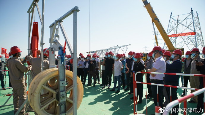 9月18日,天津送變電公司員工在中新生態(tài)城220千伏輸變電工程現(xiàn)場(chǎng)組織開(kāi)展“采用對(duì)接裝置的流動(dòng)式起重機(jī)分段組塔”項(xiàng)目的試點(diǎn)觀摩。