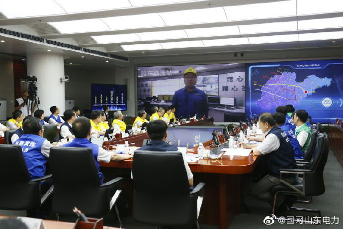 今天上午,公司聯(lián)合山東省能源局舉辦山東電網(wǎng)應對直流閉鎖源網(wǎng)荷聯(lián)合實戰(zhàn)演練,驗證電網(wǎng)因直流閉鎖損失大量省外來電后,通過“受端電網(wǎng)安全防御系統(tǒng)”實施發(fā)電、電網(wǎng)、用戶三方聯(lián)動,迅速恢復電網(wǎng)安全穩(wěn)定運行。全省45家發(fā)電企業(yè)、48家用電客戶和國網(wǎng)山東電力省、市、縣各級單位參與演練。此次實戰(zhàn)演練的圓滿完成標志著山東電網(wǎng)可以承受650萬千瓦沖擊,10分鐘內(nèi)恢復電力平衡,山東電網(wǎng)構(gòu)筑起智慧防線,可防范大面積停電事件的發(fā)生。