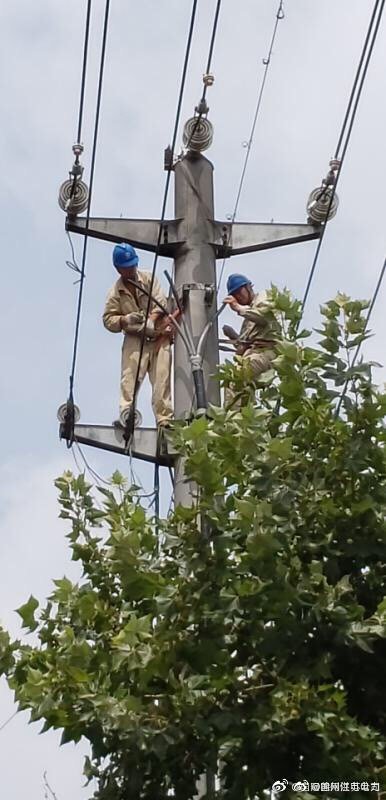 【冒高溫搶修10千伏電纜引下線燒壞故障】7月8日,國網(wǎng)徐州銅山區(qū)供電公司運維檢修部配電班人員冒高溫搶修10千伏南七124線33號桿電纜引下線燒壞故障,保障康平小區(qū)公變用電。