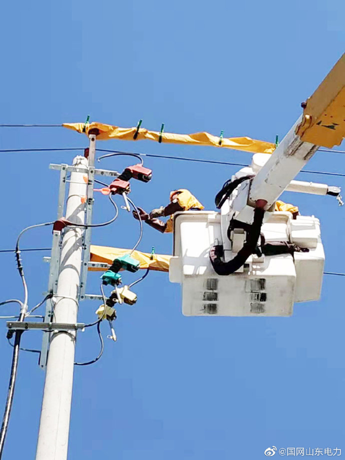【高溫帶電T接 充足電力保生產(chǎn)】7月8日,國網(wǎng)茌平縣供電公司帶電作業(yè)人員在10千伏八里線北八里支線30號桿二公司支線2號桿處帶電T接某塑料制品廠高壓業(yè)擴安裝工程,保障了附近居民用電需求,也為塑料制品廠及時提供了充足電力。 ????