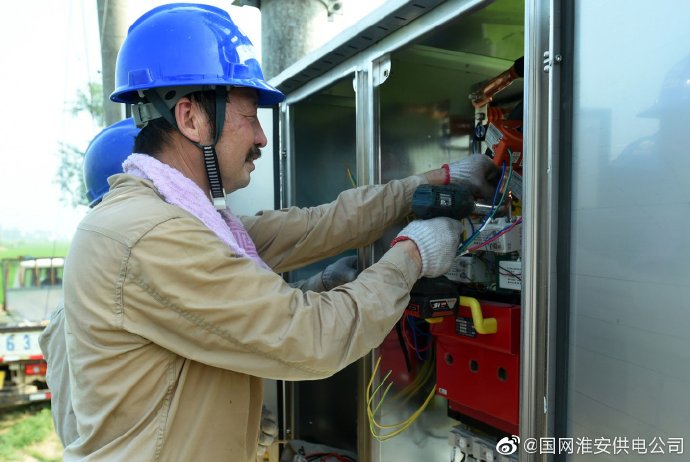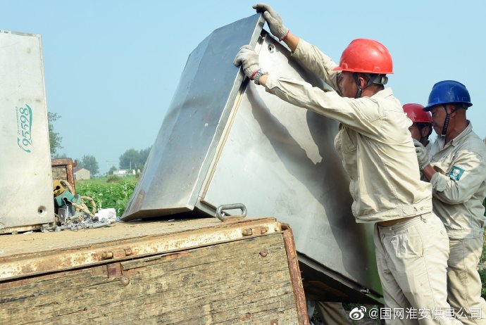 【三伏迎高烤??汗水換清涼】 7月22日,淮安盱眙縣供電公司員工在管仲鎮(zhèn)祖窯村陶莊組安裝智能配電箱。當(dāng)日,室外氣溫高達35度,供電員工們早晨5點30分就趕到現(xiàn)場,將原配電箱拆除,更換新式智能配電箱,烈日下,供電員工們?nèi)徊活櫤顾疂裢敢卤常皶r為41個用電客戶用上清涼電。