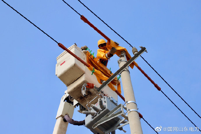 【高溫帶電作業(yè) 傳遞夏日清涼】7月24日,國網(wǎng)即墨市供電公司帶電作業(yè)人員對10千伏水泊線9號甲桿進行直線桿改耐張桿并加裝隔離開關(guān)工作。當(dāng)日天氣酷熱,工作人員穿著密閉絕緣服頂著烈日,進行三個小時奮戰(zhàn),順利完成本次工作。