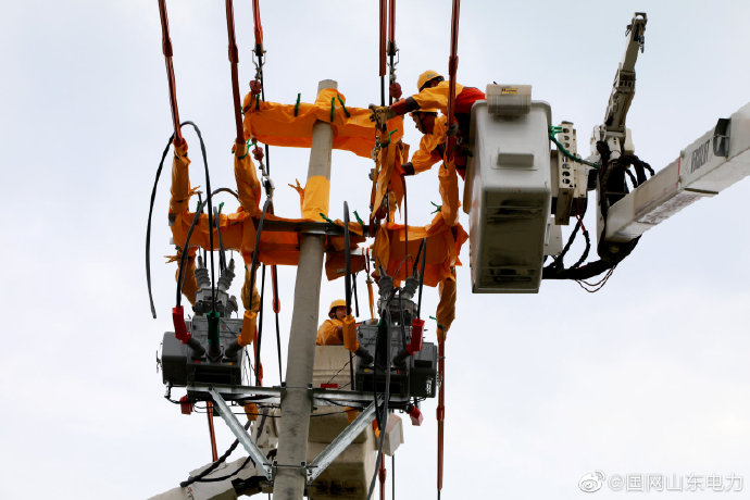 【帶電安裝開關(guān) 保障電力持續(xù)供應】7月24日,國網(wǎng)鄄城縣供電公司帶電作業(yè)人員在10千伏大戶線、10千伏南環(huán)線同桿架設(shè)線路87號桿上開展直線改耐張并加裝開關(guān)作業(yè)。此類帶電作業(yè)項目技術(shù)難度高、作業(yè)復雜,工作人員從上午六點開始,連續(xù)作業(yè),保障電力的持續(xù)可靠供應。 ????