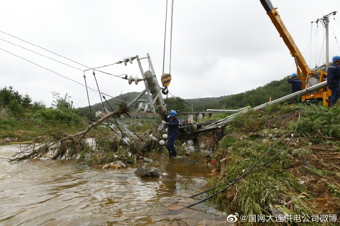 大連供電公司全力搶修因?yàn)?zāi)停電的線路