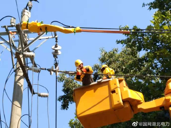 【帶電“小黃人”,與時(shí)間賽跑】8月15日,國網(wǎng)宜昌供電公司配電運(yùn)檢室的帶電“小黃人”們一大早就奔赴現(xiàn)場,開始剪、搭火工作,為了盡快完成工作,減少夏天居民停電時(shí)間,作業(yè)人員披著厚厚的絕緣服,在高空“360度”翻轉(zhuǎn),太陽的直射讓他們十幾分鐘就渾身濕透,作業(yè)人員仍在用耐心、沉著和驕陽進(jìn)行著一場時(shí)間的賽跑,力爭讓隱患早日消除。