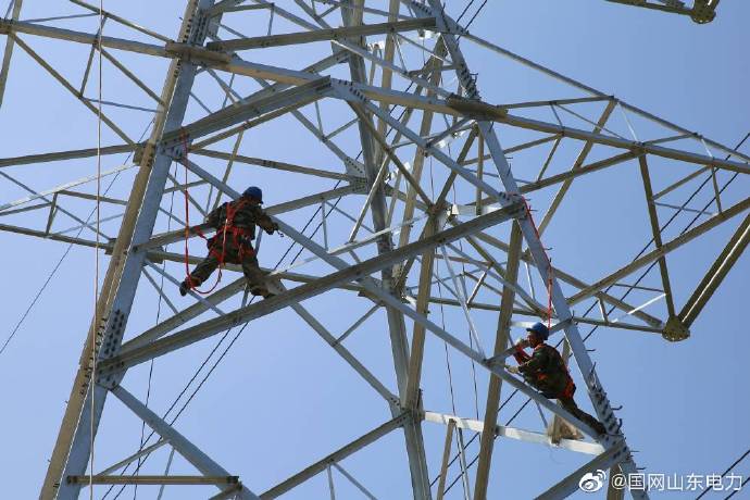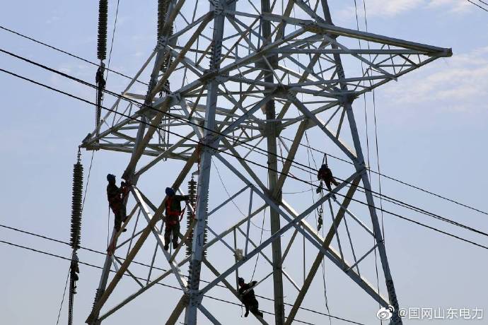 【高空忙組塔 送電為民安】8月26日,國網(wǎng)淄博供電公司員工在新建南蘇220千伏線路工程川法線進行A12桿塔組立工作,在確保安全前提下加快施工進度,于31日前完成送電,為周邊地區(qū)電網(wǎng)的安全運行提供可靠基礎。 ????