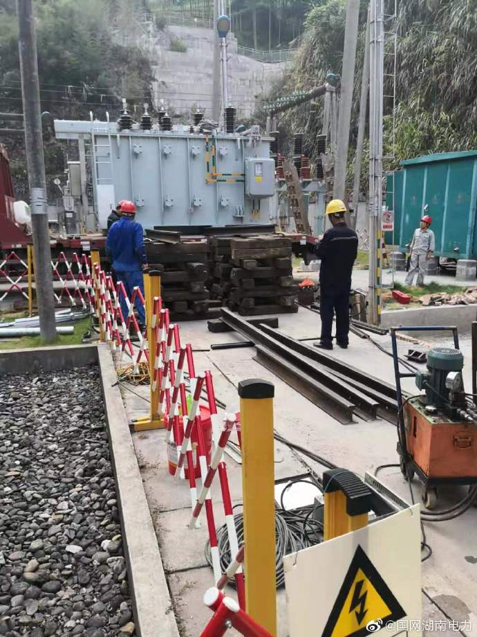 從昨天白晝到凌晨4點,因場地地形限制,為不影響35kV崀山變電站站內其他間隔正常供電。國網(wǎng)新寧公司變電檢修班采用人工搬運方式,歷經(jīng)十多個小時,將擴建的2號主變安裝就位。待擴建主變正式投運后,將有效保障崀山風景區(qū)用電需求。