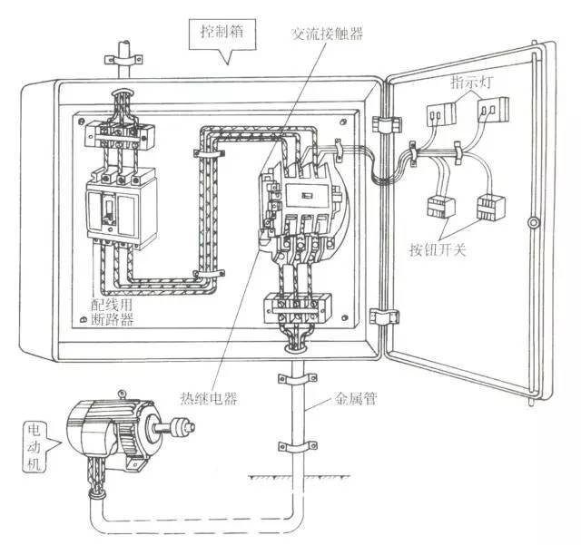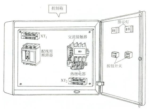 1)主電路:主電路的元器件應(yīng)布置于箱體內(nèi),按照電源進(jìn)線、接線端子、斷路器(電源開關(guān)和主電路熔斷器)、交流接觸器、熱繼電器、負(fù)載接線端子等從上到下排列整齊。